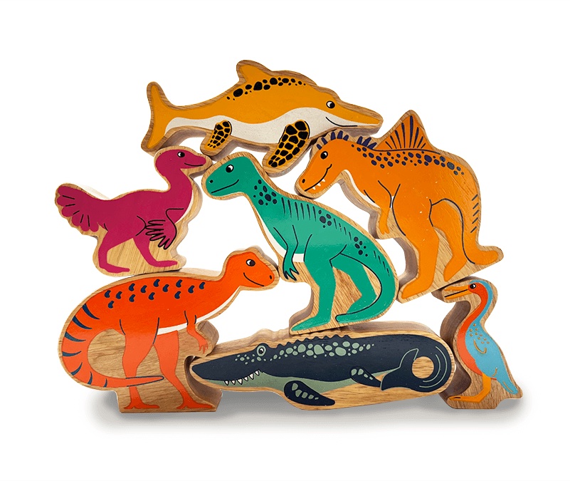 All the dinosaurs are colourful natural wooden figures with a beautiful wood grain edge – each one is unique! They are painted with a front and back view to create bright, fun play and hours of entertainment.