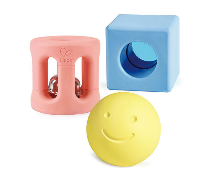 This set includes 1 pieces, 1 cube, 1 cylinder and 1 ball in 3 soft pastel colours.