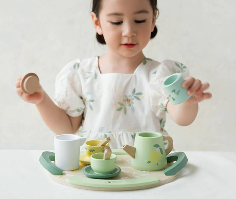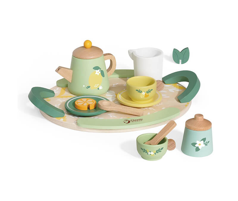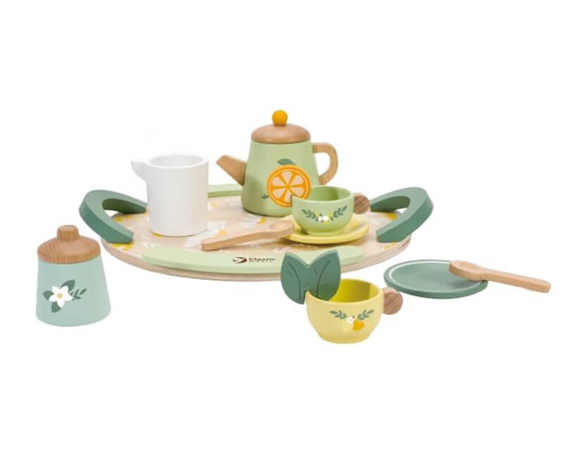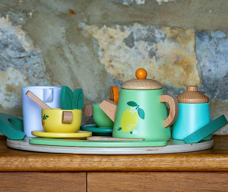 This wooden Vintage Afternoon Tea Set is a beautiful toy to have at a playdate between friends as they socialise letting their imagination take them to a real tea party. An ideal gift as it is beautiful to look at and easily portable. This set includes all the right accessories to make a lovely cup of tea, which flavour tea would you like?